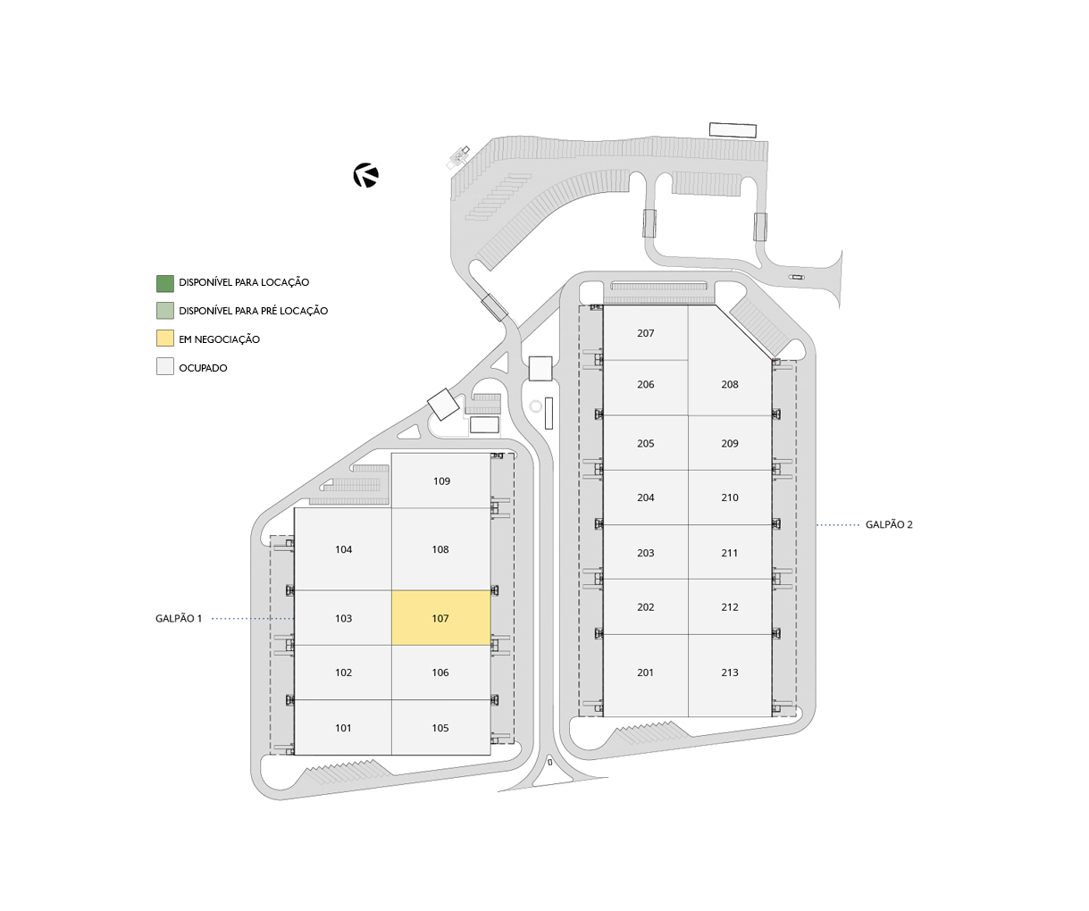 Check out the layout of the Distribution Park Dutra warehouses below.